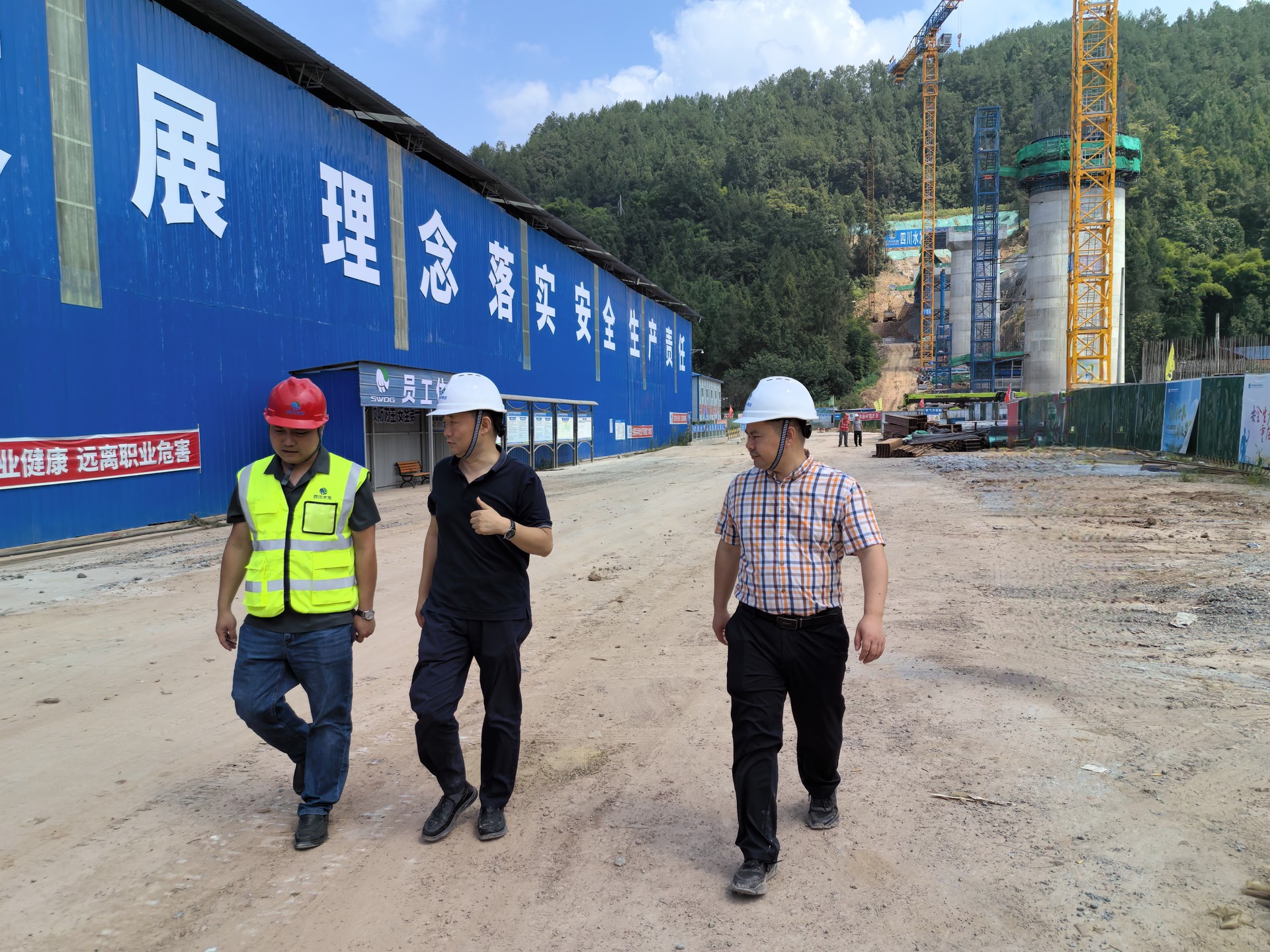 (在構溪河渡槽施工現場檢查防汛情況)